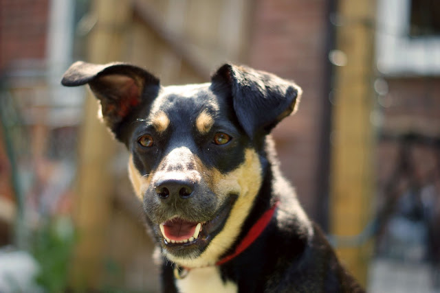 Jess loves being outside when it's warm, she has a dig behind the bushes, finds stuff to roll in, kicks up the grass... it definitely brings out a part of her character she wouldn't show otherwise.